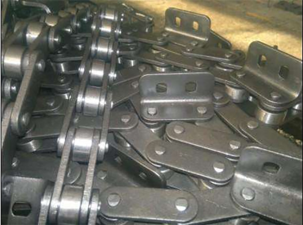 橡膠鏈:此類鏈條是在基于A、B系列鏈條的外鏈節(jié)上加U形附板,在附板上粘上橡膠(如天然橡膠NR、硅樹脂橡膠SI等)可增加磨損能力,降低噪音,增加防震能力。用于輸送。 尖齒鏈:這種鏈條廣泛用于木材工業(yè),如木材的喂入和輸出、切割、傳送臺(tái)輸送等。